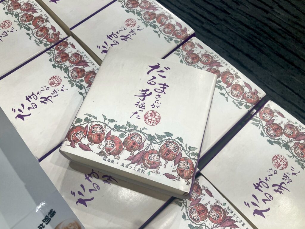 今回は、開発中のうちの1種、だるまモチーフの「さつまいも餡もなか」を用意。商品名やパッケージのデザイン案も、一から生徒達自身で考えたものです。